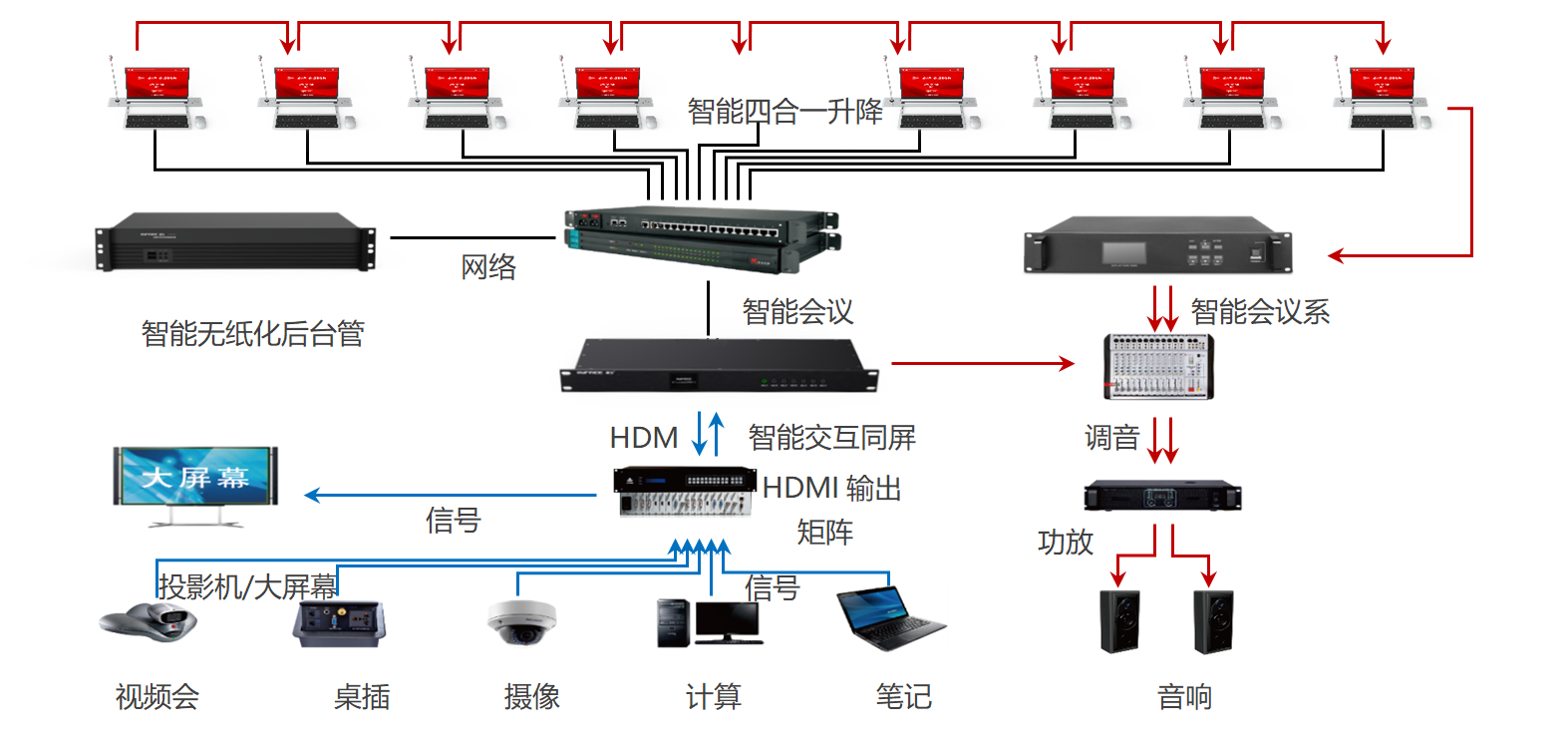 伸缩式键盘和鼠标延长参会人员的手,机器安装位置可离参会人员远一点。