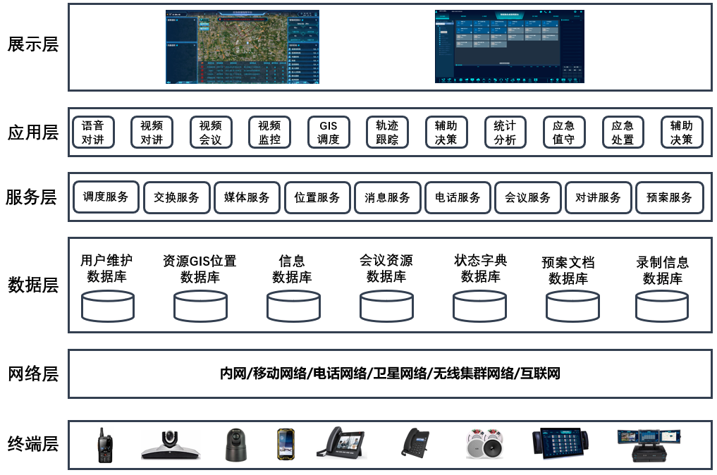- 通讯集成平台:作为整个系统的核心,负责对接入的电话系统、监控系统、会议音频系统、视频会议系统、无线对讲系统、移动单兵终端等通讯子系统进行统一管理和调度,实现各系统之间的互联互通和信息共享。